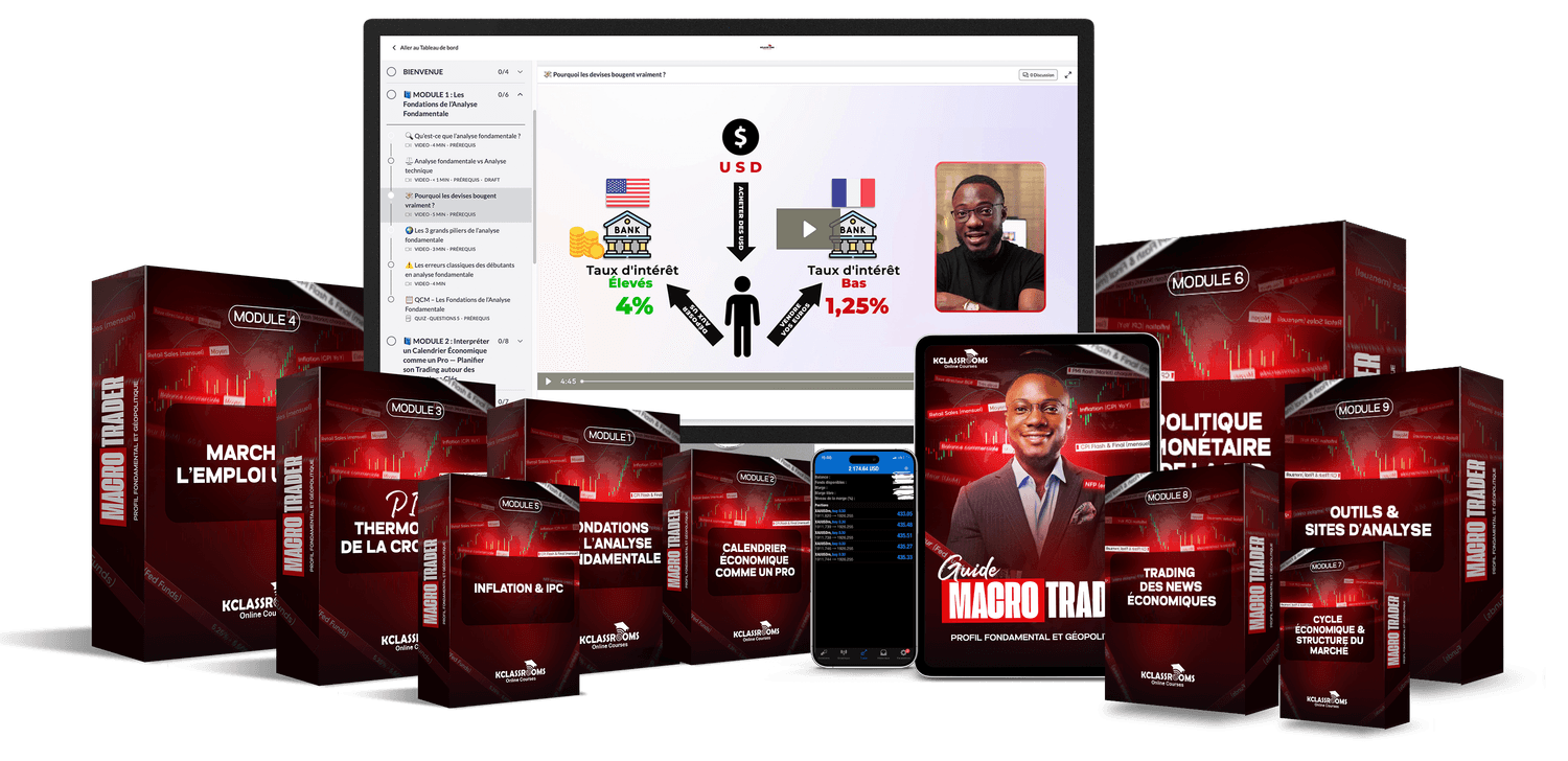De la fondation macro jusqu’au trading des news, avec outils et méthodologie.