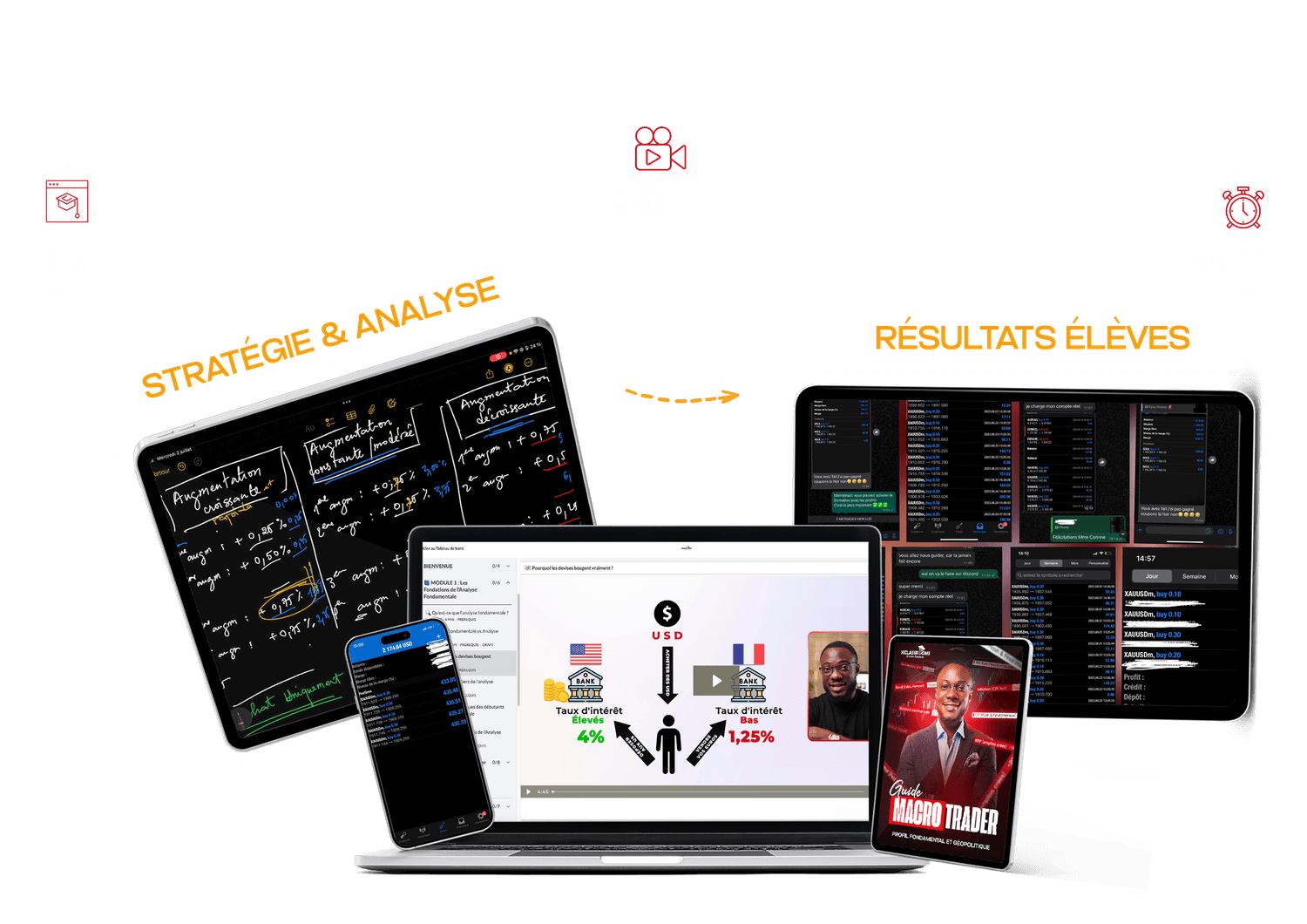 Macro Trader, c'est 7 ans d’expertise en trading professionnel, synthétisés en un programme conçu pour faire de toi un trader rentable et indépendant.